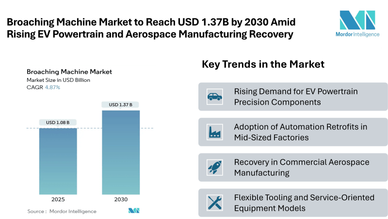 Broaching Machine Market to Reach USD 1.37 Billion by 2030 Driven by Rising EV Powertrain Production and Aerospace Manufacturing Recovery